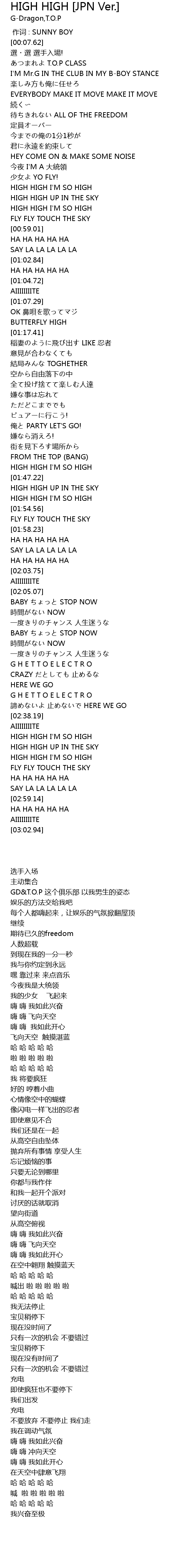 | [00:45.13] | HIGH HIGH I' M SO HIGH |