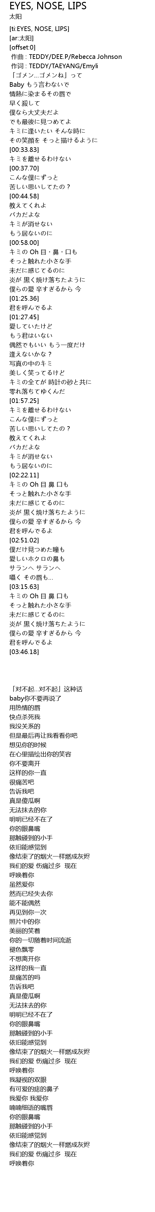 | [00:01.00] | zuò cí : TEDDY TAEYANG Emyli |