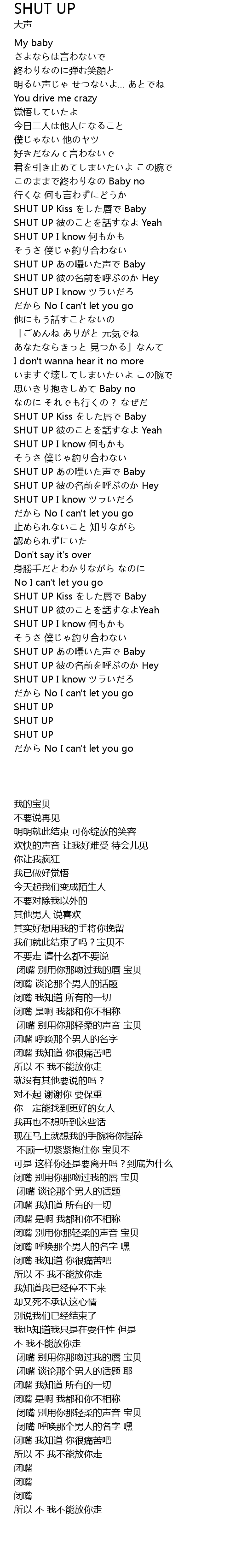 | [02:04.70] | SHUT UP nie sheng Baby |