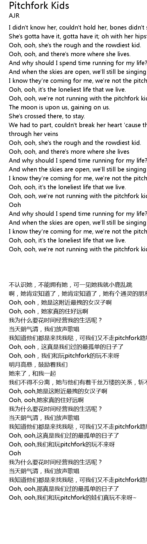 Ooh, ooh, we're not running with the pitchfork kids |