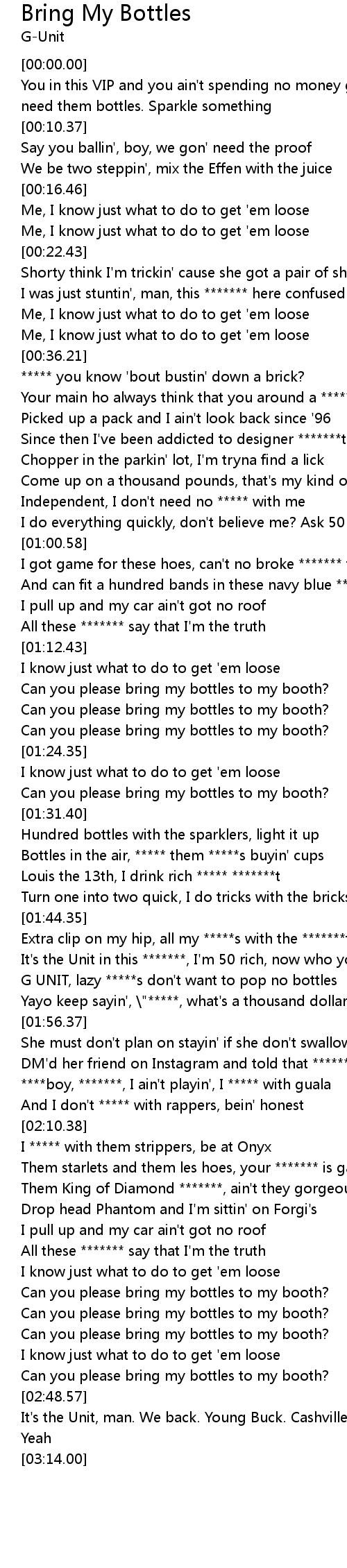 You in this VIP and you ain't spending no money get the ***** out. We need them bottles. Sparkle something |