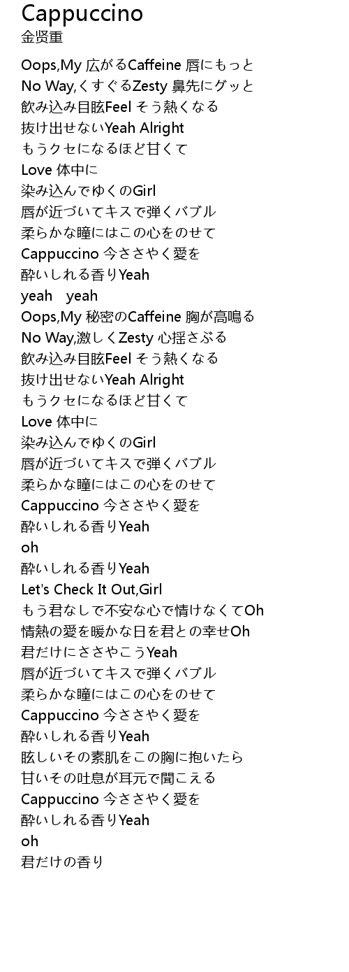 | [00:58.442] | Cappuccino jīn ài |