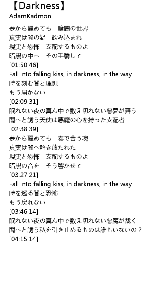 | [03:27.21] | Fall into falling kiss, in darkness, in the way |