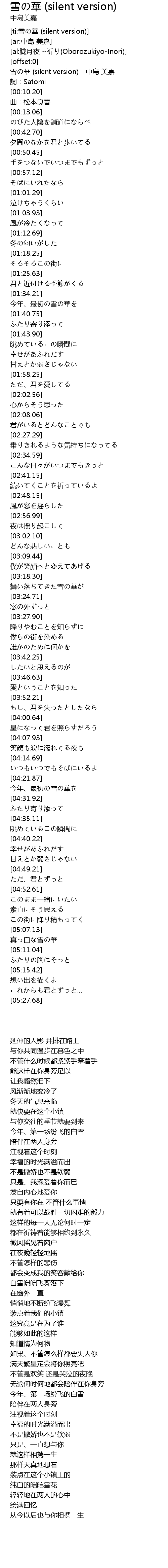 | [00:00.75] | 雪の華 (silent version) - 中島 美嘉 |