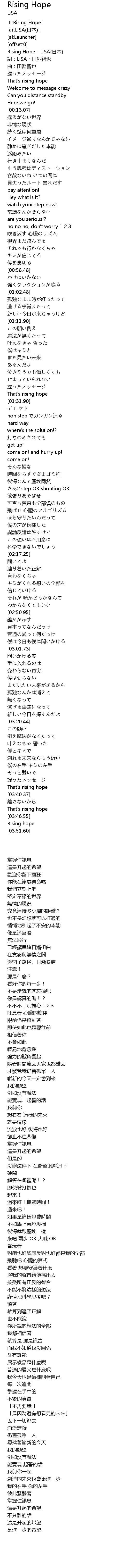 | [00:00.42] | Rising Hope LiSA rì běn |