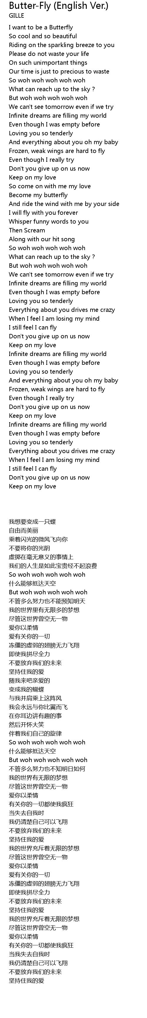 | [00:16.65] | I want to be a Butterfly |