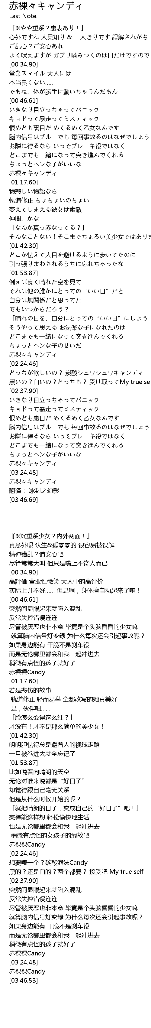 | [03:44.22] | 赤裸々キャンディ |