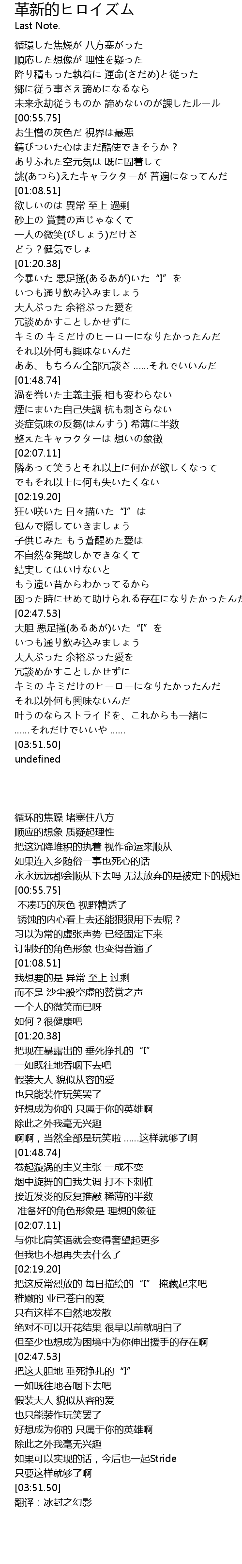| Song | 革新的ヒロイズム |