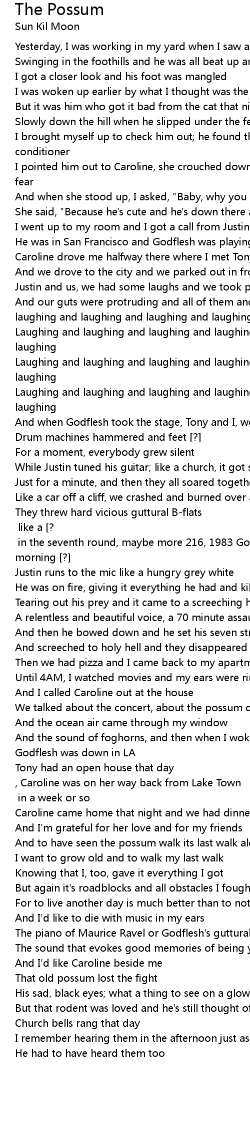 And our guts were protruding and all of them and we just kept laughing and laughing and laughing and laughing and laughing and laughing and laughing |