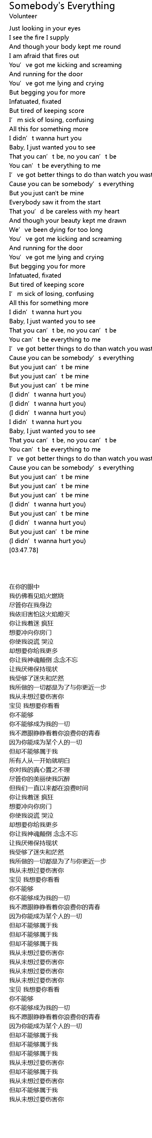 | [03:18.31] | Cause you can be somebody' s everything |