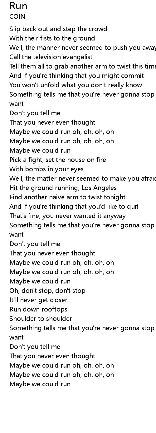 | [01:00.72] | Maybe we could run oh, oh, oh, oh |