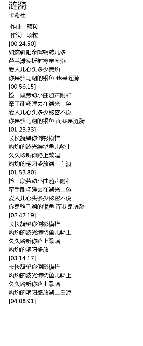 | [00:49.31] | 你是骆马湖的银鱼 我是涟漪 |