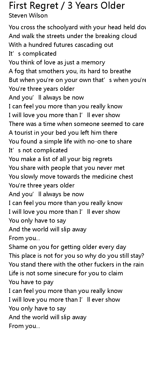 | Song | First Regret / 3 Years Older |