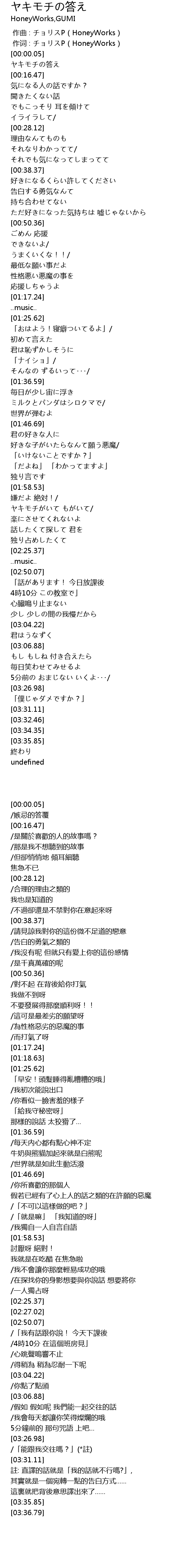 | [00:00.01] | zuò cí : P HoneyWorks |