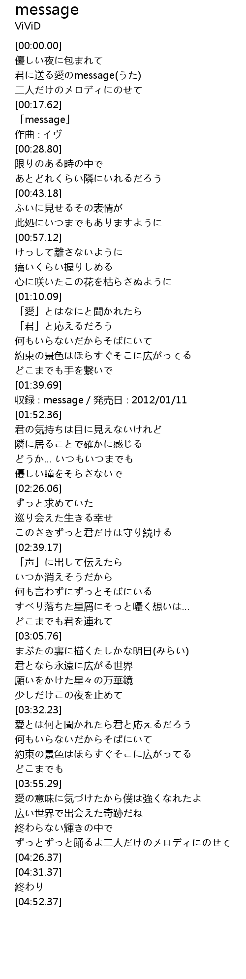 | [01:46.36] | 収録∶message/発売日∶2012/01/11 |