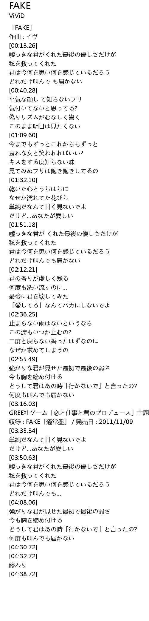 | [03:28.34] | 収録∶FAKE「通常盤」/発売日∶2011/11/09 |