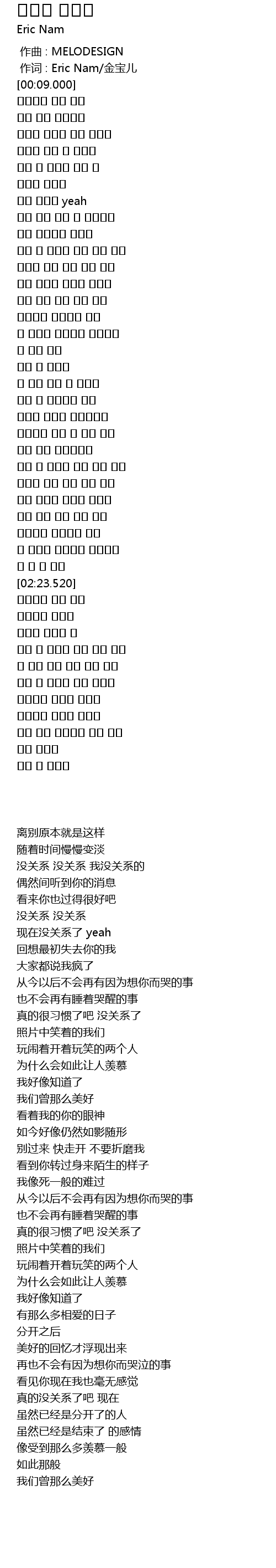 | [00:01.00] | 作词 : Eric Nam/金宝儿 |