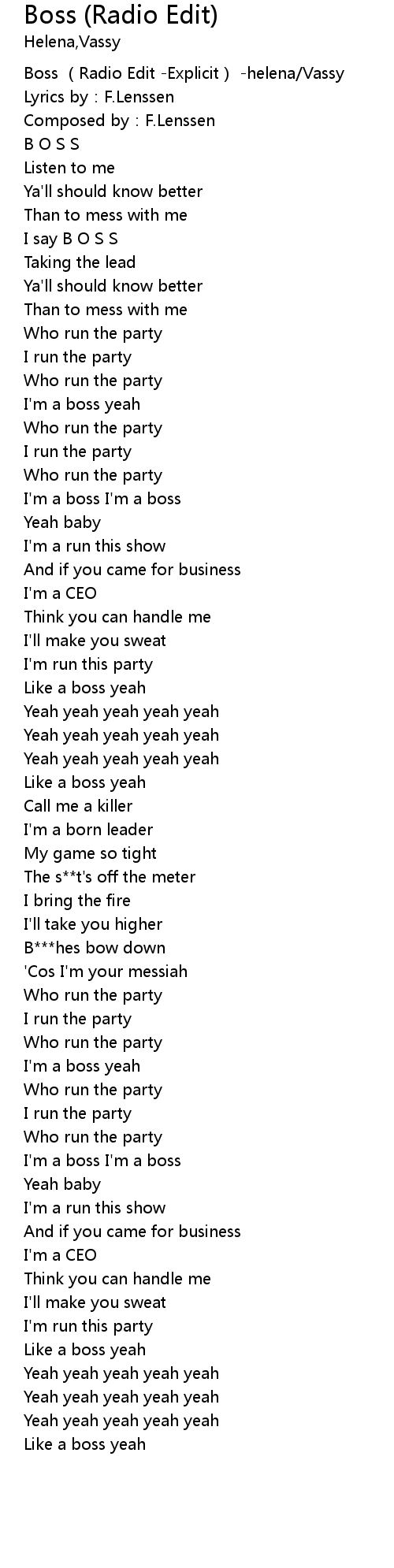 | [00:00.179] | Boss (Radio Edit -Explicit) -helena/Vassy |
