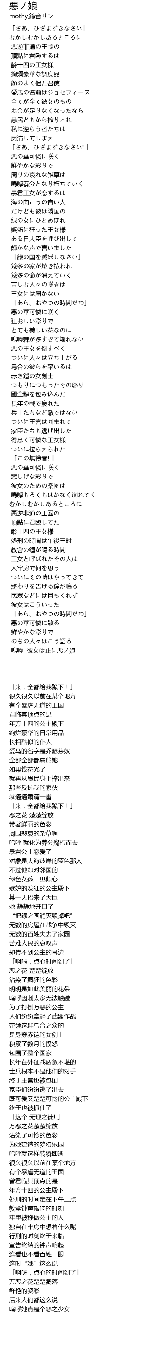 | [04:15.93] | 嗚嘑 彼女は正に悪ノ娘 |