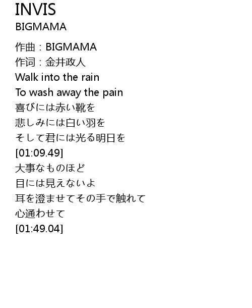 | [00:00.30] | zuò qǔ: BIGMAMA |