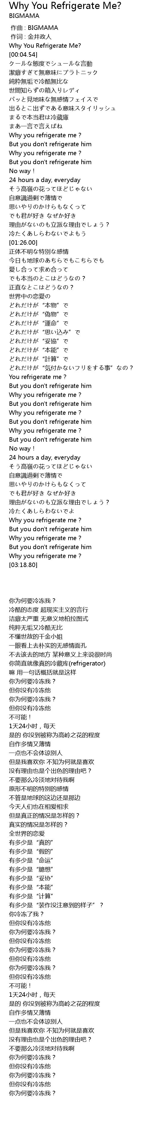 | [00:44.69] | まるで本当君は冷蔵庫 |
