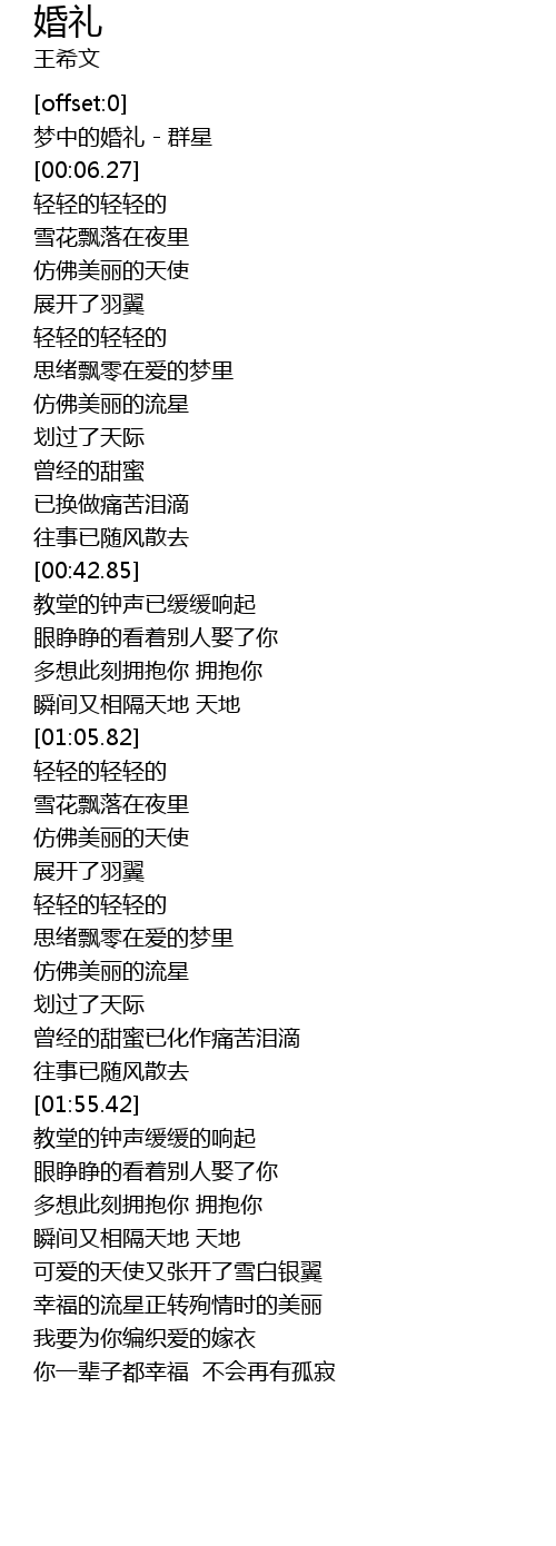 | [00:01.95] | 梦中的婚礼 - 群星 |