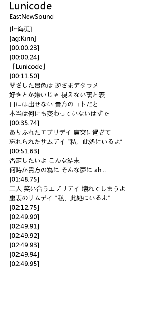 | [00:00.25] | 「Lunicode」 |