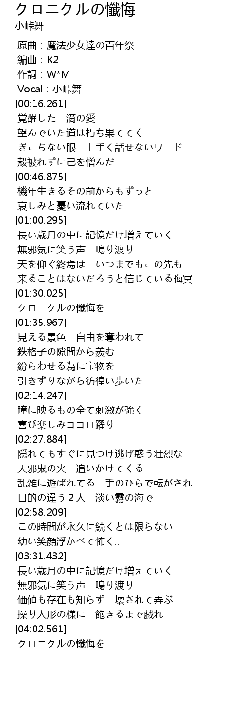 | [01:31.042] | クロニクルの懺悔を |