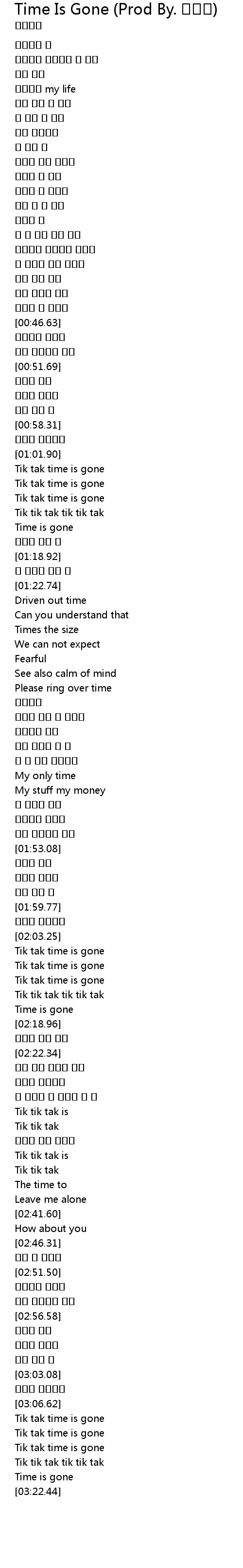 | [01:06.35] | Tik tak time is gone |