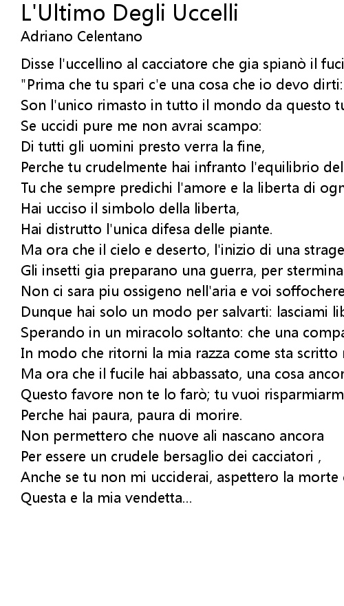 | Song | L'Ultimo Degli Uccelli |