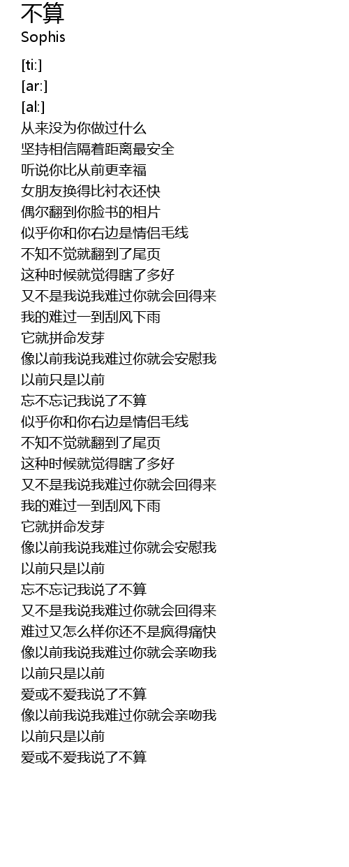 | [03:03.11] | wang bu wang ji wo shuo liao bu suan |