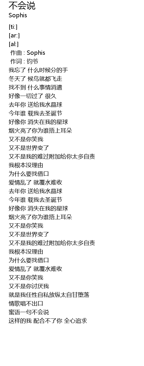 | [03:00.84] | mi yu yi ju bu hui shuo |