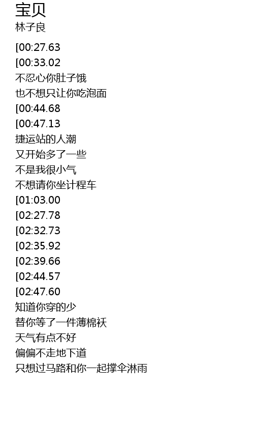 | [03:02.87][02:39.66][01:23.35] | 有你叫着叫我一声宝贝宝贝 |