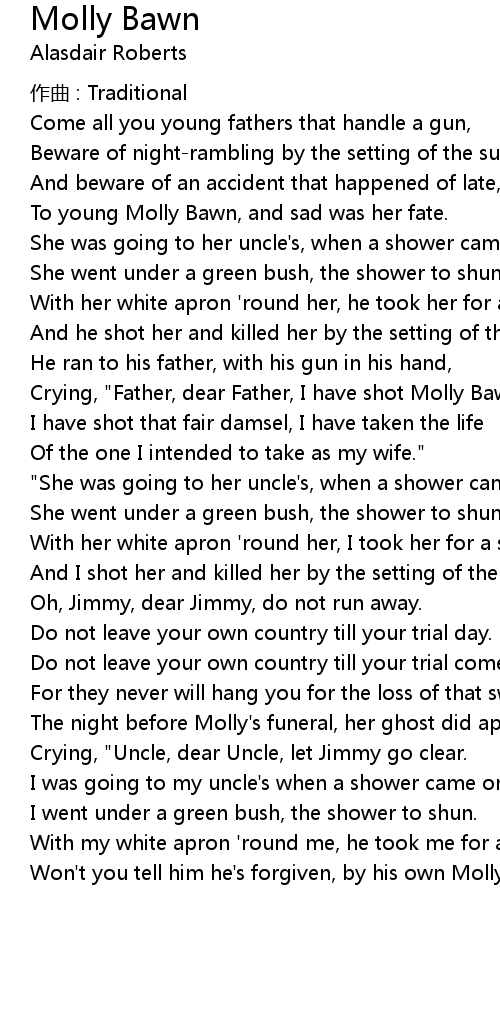 | Won' t you tell him he' s forgiven, by his own Molly Bawn?" |