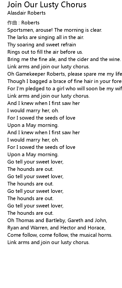 | Oh Gamekeeper Roberts, please spare me my life, | |