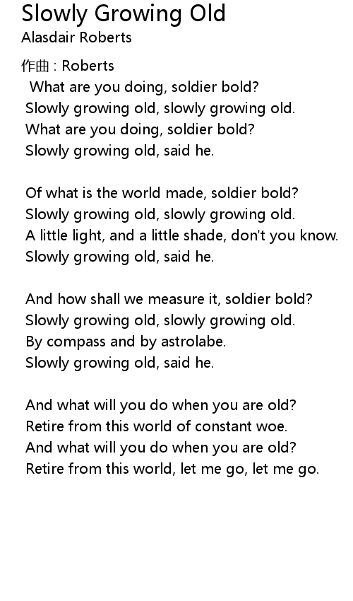 | Slowly growing old, slowly growing old. | |