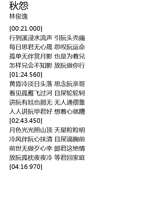 | [00:38.900] | 每日思君无心晟 怨叹阮运命 |