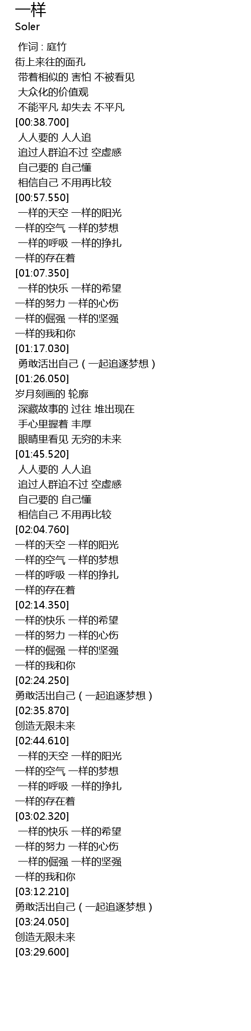 | [03:16.950] | 勇敢活出自己(一起追逐梦想) |