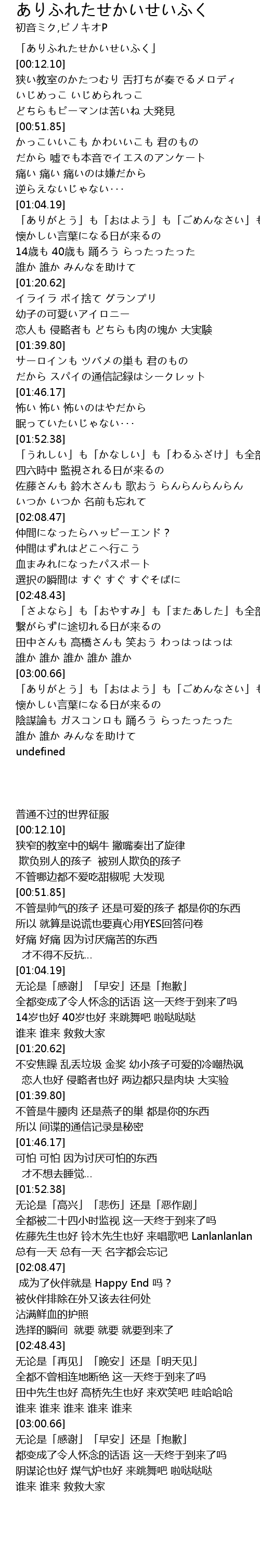 | [00:00.72] | 「ありふれたせかいせいふく」 |