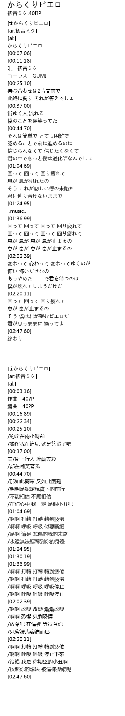 | [02:30.27] | そう 僕は君が望むピエロだ |
