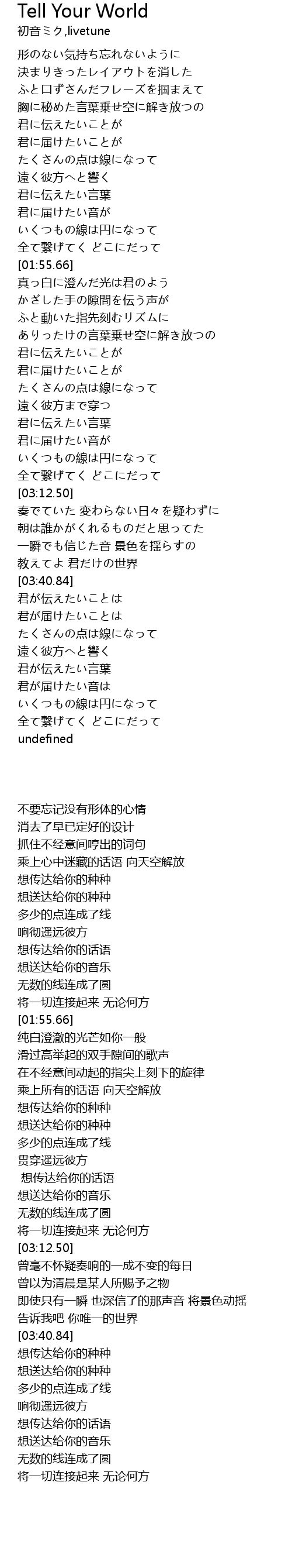 | [03:31.66] | 教えてよ 君だけの世界 |