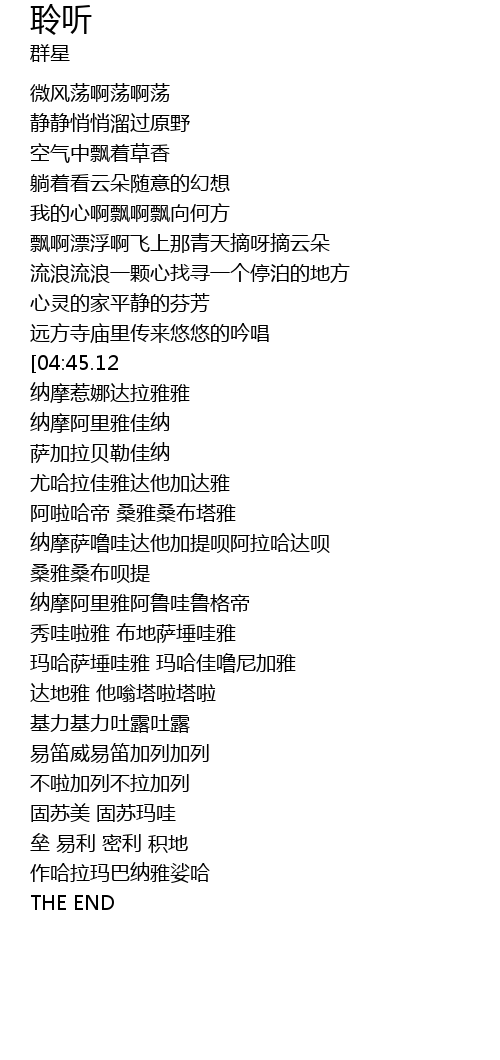 | [03:23.48] | na mo a li ya a lu wa lu ge di |