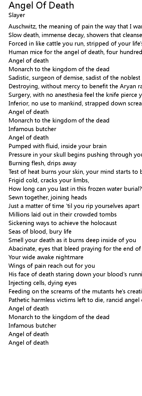 Pathetic harmless victims left to die, rancid angel of death flying free |