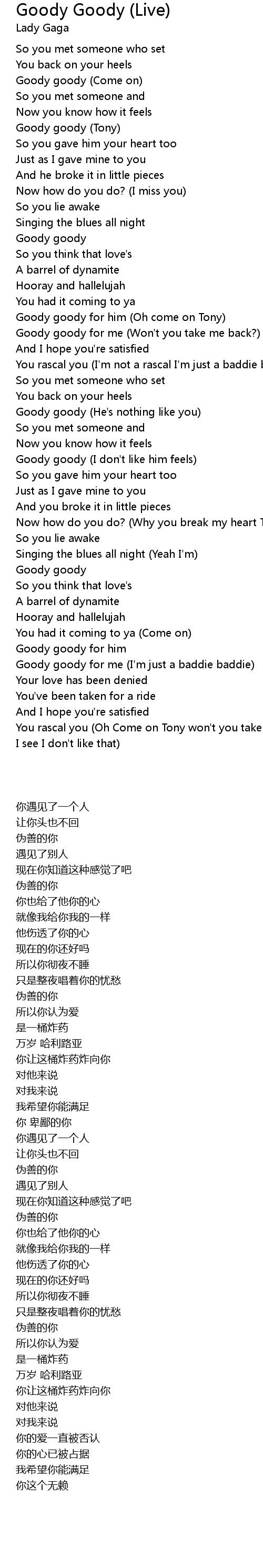 Goody goody for me (Won't you take me back?) |