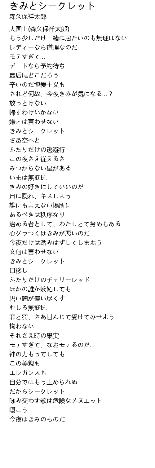 | [00:44.560] | されど何故、今夜きみが気になる…? |