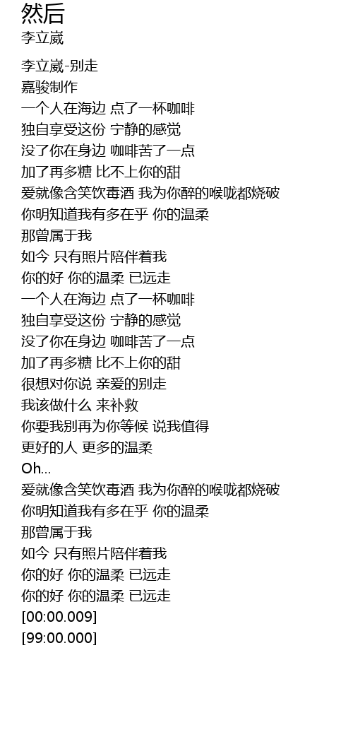 | [00:00.100] | 李立崴-别走 |
