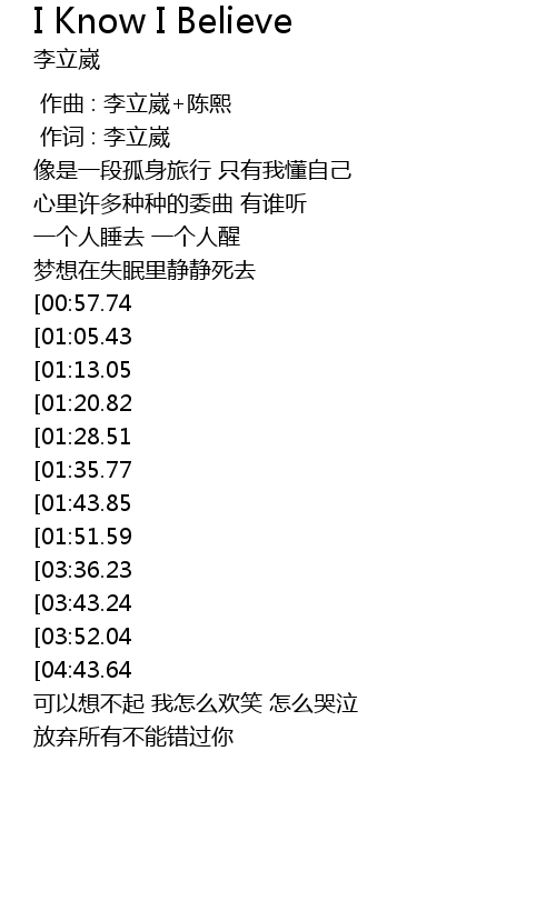 | [04:55.04][04:43.64][03:59.09][02:22.23] | Your love is everything I know I believe |