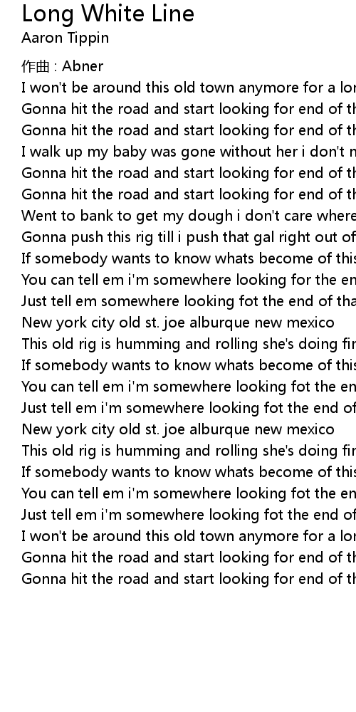 | You can tell em i' m somewhere looking for the end of this long white line | |