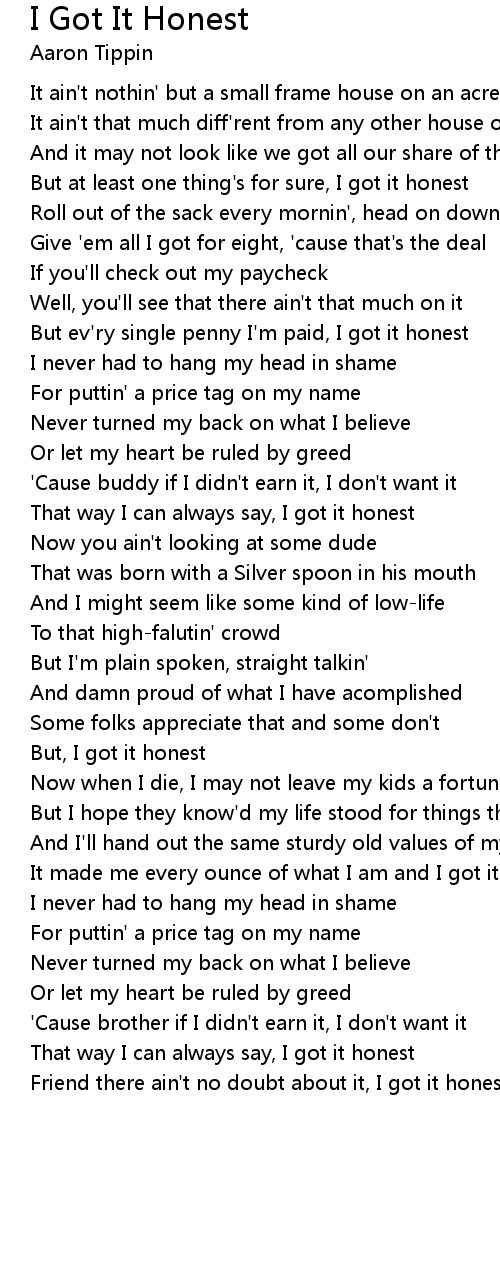 But ev'ry single penny I'm paid, I got it honest |