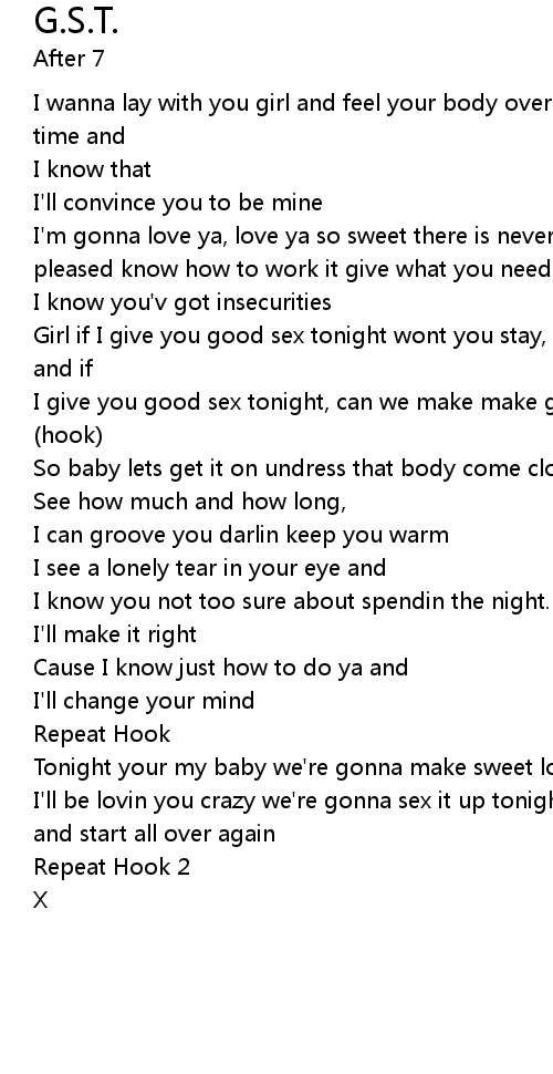 Girl if I give you good sex tonight wont you stay, stay with me another night and if |